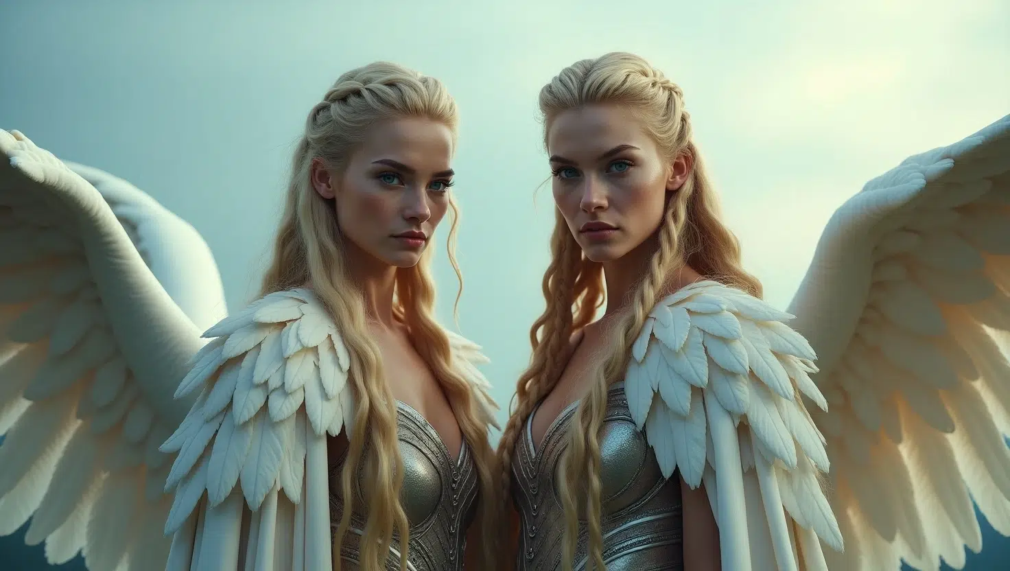 İskandinav mitolojisinde Valkyrieler, her şeyin babası Odin'e hizmet ederler. Onlar, genellikle gökyüzünde kanatlı atlara binmiş olarak tasvir edilen ilahi bakirelerdir. Her biri bir mızrak taşır ve güneş kadar altın sarısı veya ay ışığı kadar soluk saçları olan parlak zırhlar giyer.